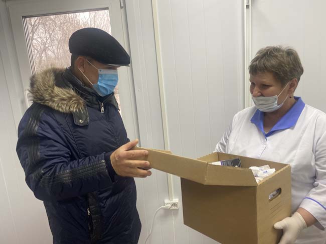 Депутат пообщался с коллективом медучреждения и традиционно передал в дар набор медицинских расходных материалов для проведения процедур и терапевтического лечения.