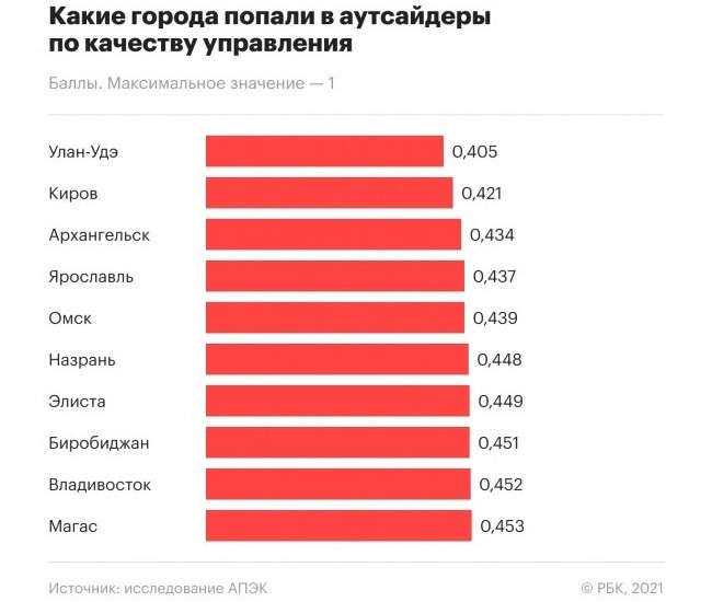 Антилидером рейтинга стал Улан-Удэ. Омск вошёл в топ-10 аутсайдеров по качеству управления, наш город на пятом месте с конца. Хуже нас живут кроме уланудэнцев только кировчане, архангелогородцы и ярославцы.