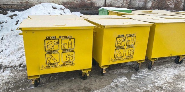 Администрация Омска поясняет, что в жёлтые баки необходимо складывать только чистый и сухой мусор, который можно использовать как вторсырьё: бумагу, картон, стекло, пластик, металл. Эту информацию нанесли на каждый контейнер.