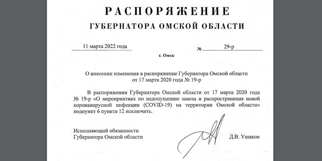 Исполняющий обязанности губернатора УШАКОВ подписал поправки к распоряжению о коронавирусных ограничениях.