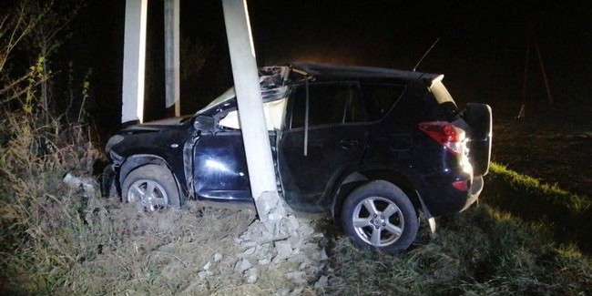 Полицейские на месте ДТП предварительно установили: 37-летний водитель кроссовера Toyota RAV4, двигаясь в направлении посёлка Боевое, вылетел в правый по ходу движения кювет и врезался в опору ЛЭП (на фото).