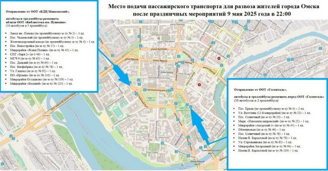 • Также в 21:45 к остановочным пунктам «Библиотека им. Пушкина» и «Госпиталь» будет организована подача дополнительных автобусов и троллейбусов (направление движения, расстановка и количество подвижного состава указаны на схеме).
