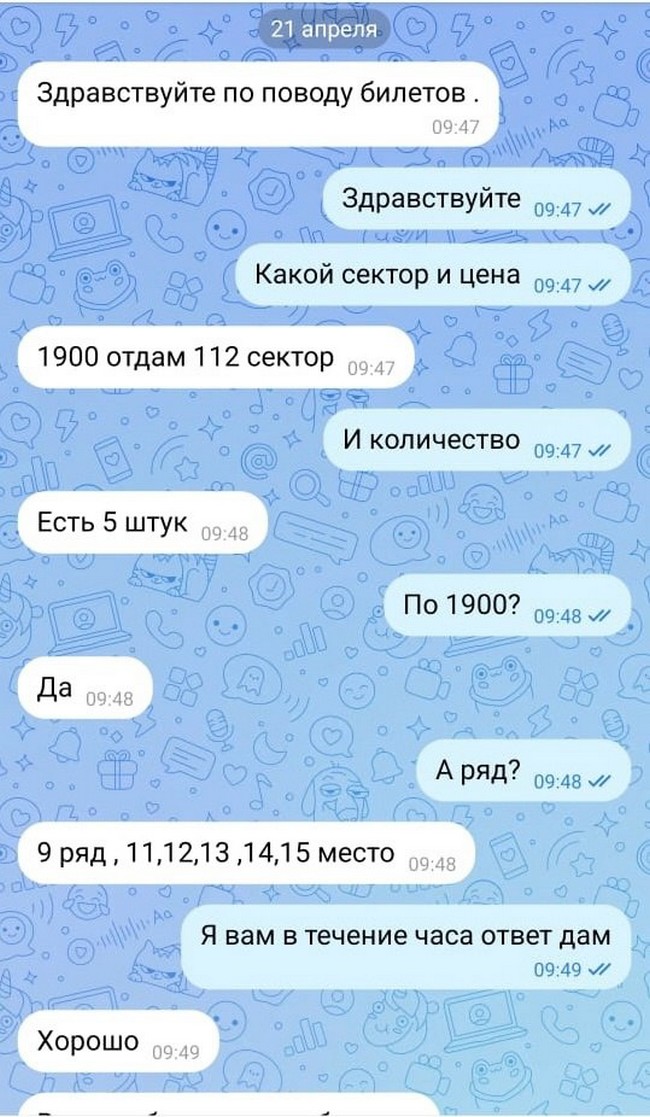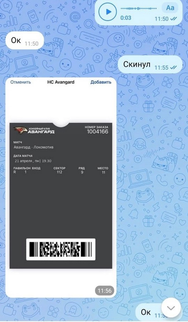 • В одном из хоккейных пабликов потерпевший получил предложение от неизвестного приобрести билеты на игру команд «Авангард» – «Локомотив». Мужчина согласился и купил пять билетов. При попытке пройти на матч потерпевшего с друзьями остановил сотрудник службы безопасности спортивного комплекса и заявил: электронные документы недействительны.