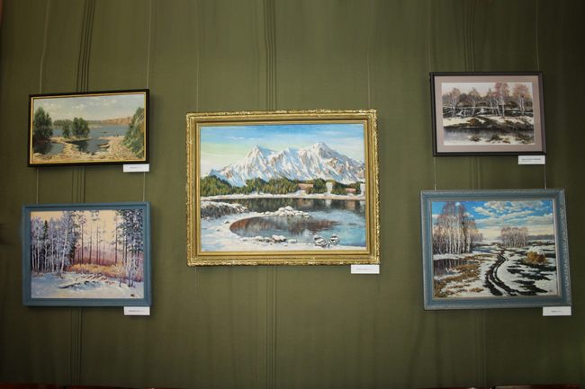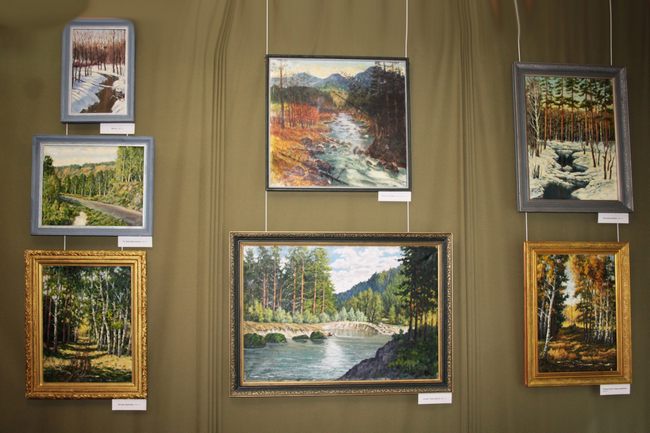 В экспозиции представлены в основном лирические пейзажи, выполненные в масляной живописи и пастели.