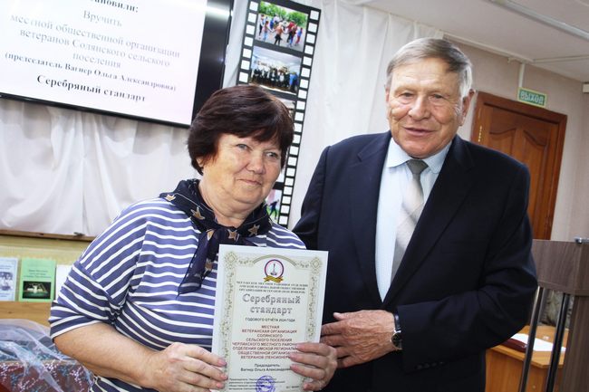 «Серебряным стандартом» наградили Черлакскую местную организацию ветеранов педагогического труда (председатель Ольга Георгиевна ВОЙНОВА), Солянскую ветеранскую организацию (председатель Ольга Александровна ВАГНЕР), Краснооктябрьскую ветеранскую организацию (председатель Галина Ивановна РОЗИНКЕВИЧ).
