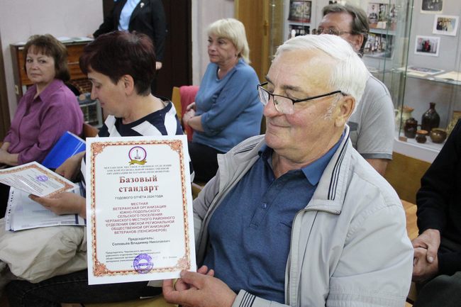 «Базовым стандартом» была награждена ветеранская организация Южно-Подольского сельского поселения (председатель Владимир Николаевич СОЛОВЬЁВ).
