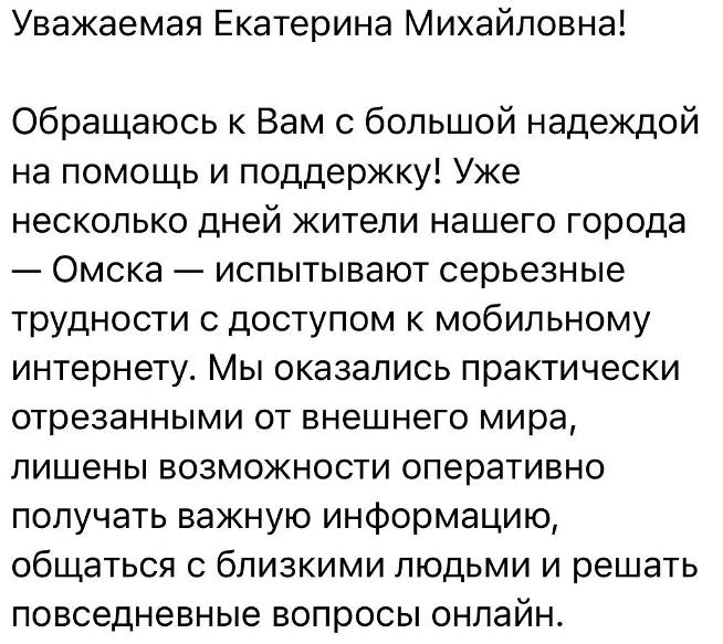 Омичи массово жалуются куда возможно, даже Екатерине МИЗУЛИНОЙ: