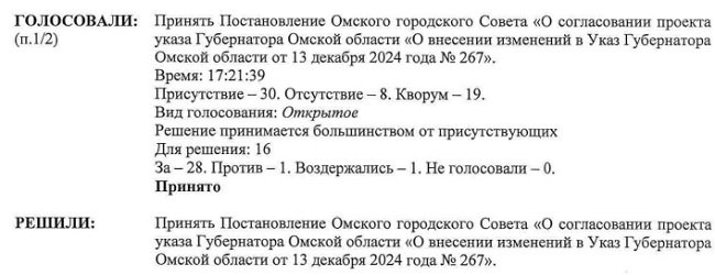 Ни один рукводитель-чиновник не решился от себя лично поддержать этот указ, подставив вместо себя и.о., а вот депутаты омского горсовета дружно поддержали этот указ на срочно созванном в пять часов вечера пленарном заседании без присутствия СМИ, проголосовав за него, хотя вообще не обязаны были его рассматривать. Предыдущие аналогичные указы в горсовете не согласовывались. За указ губернатора о резком подъеме предельного индекса платы за ЖКХ проголосовали 28 депутатов, против был лишь один, и один депутат воздержался.