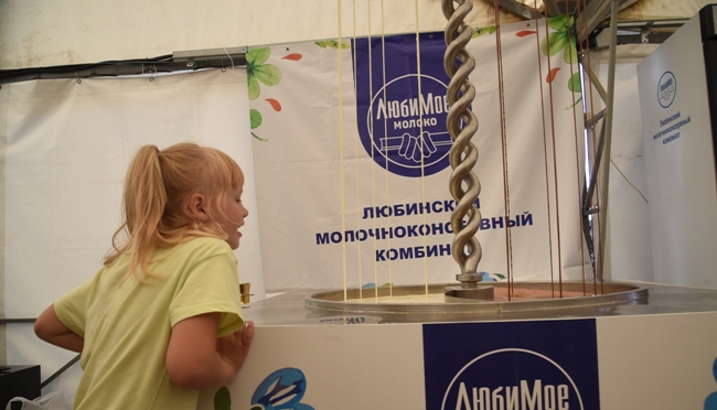 В продуктовом павильоне, когда до него дошел губернатор, охрана уже с трудом сдерживала посетителей. До открытия оставались считаные минуты, поэтому омичи осаждали палатку со всех сторон. Сначала Виталий ХОЦЕНКО подошел к стенду компании «СибХолод», где ему предложили продегустировать каравай из мороженого, затем к «Тюкалинскому хлебу», где тоже состоялась дегустация продукции, а далее губернатору представили экспозицию Любинского МКК, где руководитель компании Геннадий ВАЛЬТЕР рассказал о новинке выставки – двухцветном фонтане из сгущенки двух сортов – с какао и классической. Его сконструировали механики Любинского МКК.