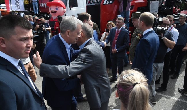Губернатор спешил дальше, его ждал президент ООО «Корпорация «Енисей» Тамир АЛИМБАЕВ с сыном Русланом. Кстати, в этот день во время церемонии открытия «АгроОмск-2025» объявили о присвоении Тамиру АЛИМБАЕВУ звания «Заслуженный предприниматель Омской области» – за освоение и внедрение передовых технологий при осуществлении предпринимательской деятельности в сельскохозяйственной отрасли.
