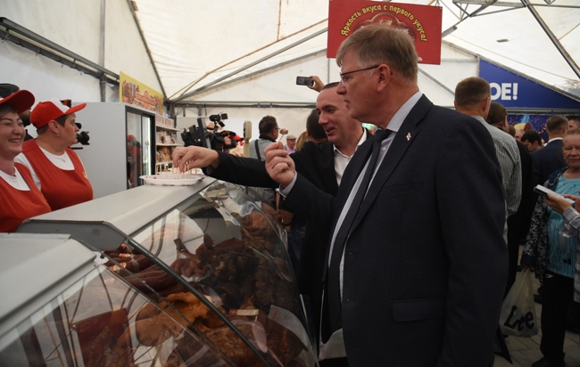 Крупные мясные производители уже традиционно свои экспозиции делают отдельно, с размахом – в них входят и павильоны, и зоны дегустации, и места для детских забав, и даже небольшие сцены. На этот раз глава региона заходил в гости к «Сибирским колбасам» и Группе «ПРОДО».