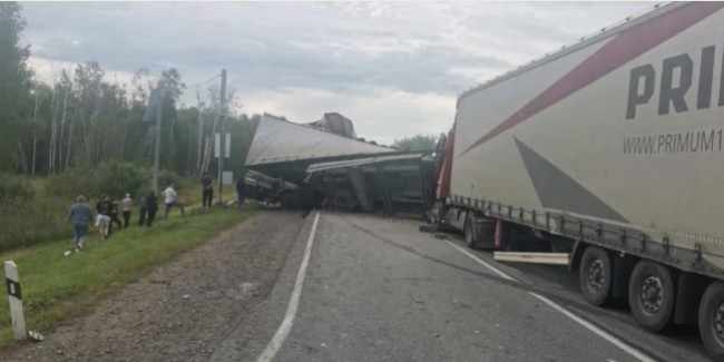 — Предварительно установлено: водитель автобуса, перевозивший футбольную команду из Тюмени, не выдержал дистанцию и допустил столкновение со следовавшим в попутном направлении автомобилем BMW, который в свою очередь въехал во впереди идущий грузовой автомобиль. Потеряв управление, водитель автобуса выехал на встречную полосу, где столкнулся с другим большегрузом. Далее в аварии приняли участие еще два грузовых автомобиля. В результате аварии с тяжелыми травмами в медицинские учреждения доставлены 19-летний пассажир автобуса и водитель одного из большегрузов, личность которого устанавливается.