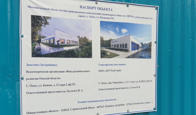 Что касается ЦИТО, объект, несомненно, необходимый, но информация о сроках и площади, озвученная омским правительством не совпадает с информационным щитом, установленным на въезде на объект. На нем, например, в обязательном порядке должны быть указаны предполагаемые сроки строительства объекта (начало, окончание) и прочая информация. Иначе — штраф.
