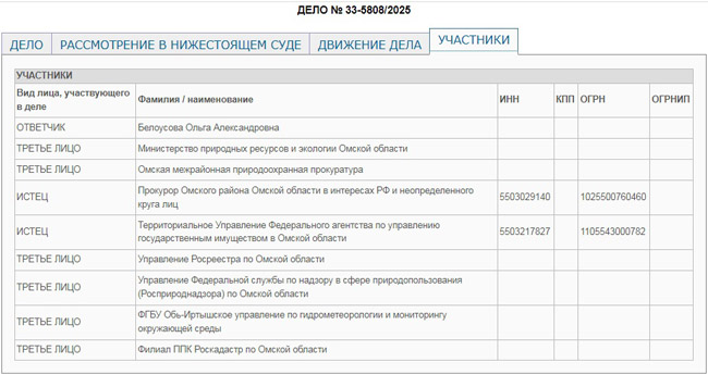 Определением судебной коллегии по гражданским делам Омского облсуда (дело №33-5808/2025, председатель – Татьяна ЧЕРНОМОРЕЦ) оставлено без изменения решение судьи Омского райсуда Елены БЕССЧЕТНОВОЙ (дело №2-1494/2025) о признании результатов межевания земельных участков недействительными, исключении сведений из ЕГРН, истребовании части земельных участков у Ольги БЕЛОУСОВОЙ в собственность РФ. Вердикт суда первой инстанции вступил в законную силу.