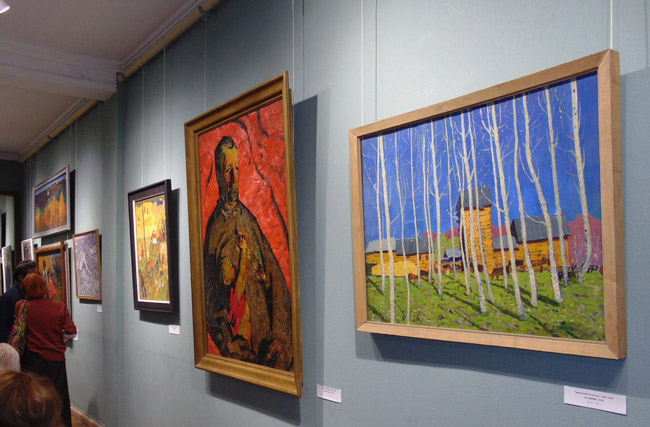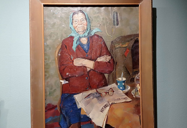 «Картины, написанные преподавателями-художниками, сегодня находятся во многих музеях России. Показать их на нашей выставке не представилось возможности. Например, картину «Мать солдата» нам привезли из музея города Тара. Наши партнёры из музея имени М.А. Врубеля и Городского музея «Искусство Омска» нам предоставили несколько полотен. У нас также хранятся картины художников Амангельды ШАКЕНОВА, Ростислава ЧЕРЕПАНОВА, Анатолия ЧЕРМОШЕНЦЕВА и других».
