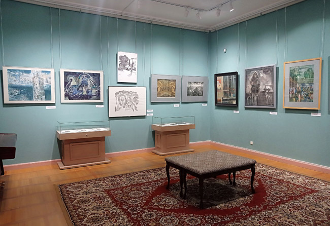 На выставке демонстрировались картины художников-преподавателей, работавших на художественно-графическом факультете в разные годы.