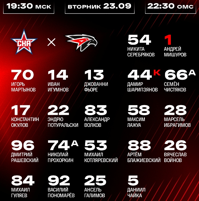 После убедительной победы в Казани омские «ястребы» вылетели в Санкт-Петербург, где 23 сентября хоккеисты местного СКА в обоюдоострой игре уступили «Авангарду» со счётом 2:4 (0:2, 1:0, 1:2).