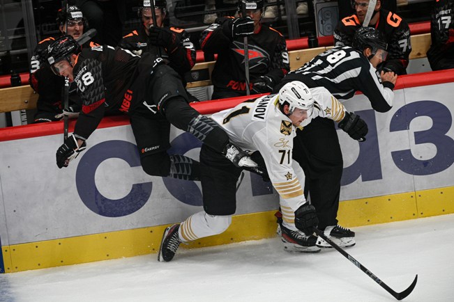 От омских «ястребов» в боксёрских поединках участвовали защитник Джозеф ЧЕКОННИ и голкипер Андрей МИШУРОВ.