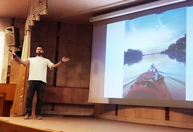 Путешественник рассказал о трудностях, что встретились на его пути. Например, чтобы не выходить из намеченного графика, ему приходилось грести веслами от 12 до 14 часов в день. Однажды у ЛЕБЕДИНСКОГО унесло течением байдарку, и он догонял её вплавь. Сергей ЛЕБЕДИНСКИЙ рассказывал, как у него намокли и испортились продукты, как попадал под дождь и ветер, как крутой волной перевернуло байдарку на водохранилище: