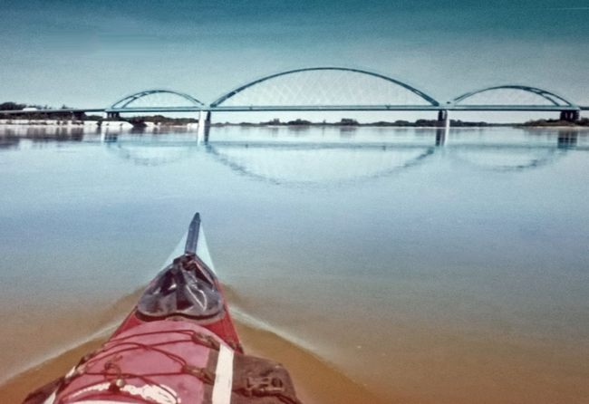 «Чтобы обойти ГЭС на водохранилище в Казахстане, мне пришлось байдарку тащить по суше на тележке, которую я возил с собой. При подходе к ГЭС я вышел на берег и вместе с байдаркой пошел по её территории. Боялся, что меня задержат. Ведь ГЭС должна строго охраняться. Везде таблички с надписями «Проход строго запрещён». Однако я прошёл свободно. Мало того, я на территории вообще людей не видел. Перешёл на другую сторону ГЭС, сел в байдарку и ушёл по воде».