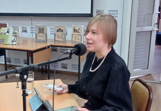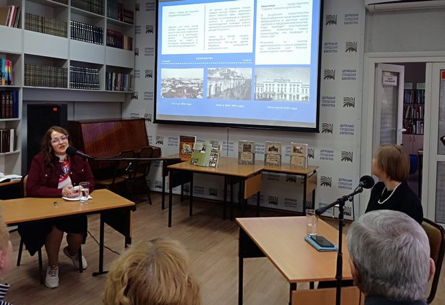 Вечер-встречу открыла Маргарита Ивановна САВРУШЕВА, ведущий сотрудник отдела краеведения библиотеки, кандидат философских наук. После краткого обзора работы отдела она предоставила слово архитектору Дарье Сергеевне НОВГОРОДЦЕВОЙ, которая рассказала об архитектуре дома, где размещались Музей городского быта и Общество коренных омичей.