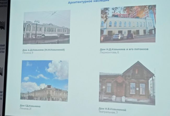 «Также начала исследовать их семейные браки с другими известными омскими фамилиями. Выяснила, что родоначальником семьи Козьминых был Тимофей. Имя определила по отчествам его детей. Дочь Ульяна Тимофеевна вышла замуж за Алексея Батюшкина. У них родился сын Капитон, который построил особняк, где в настоящее время находится Центр изучения истории Гражданской войны Исторического архива Омской области. Вторая ветвь древа относится к Дмитрию Козьмину. У него было четыре сына. Например, Алексей стал купцом второй гильдии. Женился на Евдокии Егоровне Пахотиной, которая на много лет пережила своего мужа. Именно она купила у Арона Мариупольского дом, который сохранился до наших дней и находится по адресу «улица Театральная, 7». Об этом доме только что рассказывала вам моя коллега Дарья НОВГРОДЦЕВА».