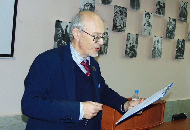 «Сегодня будет презентована очень интересная монография известного омского историка и профессора Анатолия Алексеевича ШТЫРБУЛА. Когда я был студентом, Анатолий Алексеевич вёл на нашем курсе семинары. Перед выходом монографии её обсуждали четыре независимых эксперта. Они дали работе высокую оценку. Когда вы будете читать монографию, то более детально вникнете в проблемы, которые затронул автор».