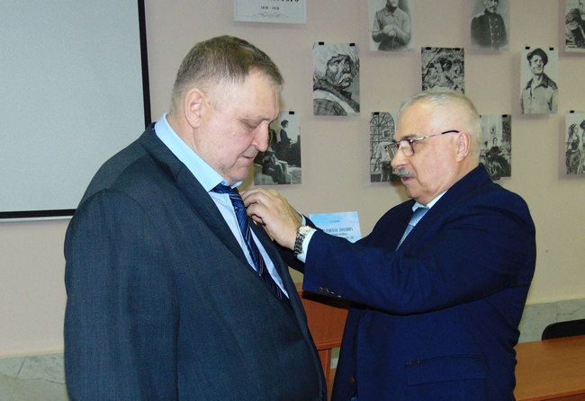 В заключение мероприятия Владимир Павлович СПИРИДОНОВ, член Совета Фонда имени С.И. Манякина, вручил Анатолию ШТЫРБУЛУ памятную медаль С.И. Манякина.