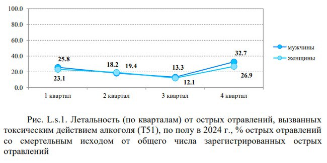 В прошлом году на 1 миллион населения региона приходилось 123 мужчины и 23 женщины, умерших от отравления алкоголем, и 86 мужчин и 11 женщин, смертельно отравившихся наркотиками.