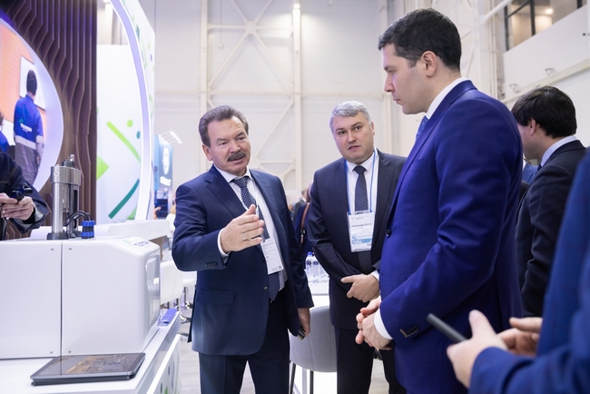 Председатель Совета директоров ГК «Титан» Михаил СУТЯГИНСКИЙ представил ключевые направления деятельности компании и реализуемые проекты в сфере мало- и среднетоннажной химии, глубокой переработки сырья и инновационных разработок, в том числе продукцию Центра микрофлюидных технологий. На стенде ГК «Титан» представлен модуль непрерывного беспульсационного дозирования, который выпускается на промышленной площадке компании в Москве.
