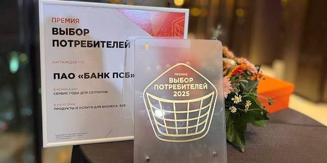 ПСБ занял первое место на премии «Выбор потребителей» и получил награду в номинации «Сервис года для селлеров» в категории «Продукты и услуги для бизнеса B2B» за пакет услуг банка для интернет-предпринимателей, которые продают товары и оказывают услуги через сайт, интернет-магазин, соцсети и маркетплейсы.