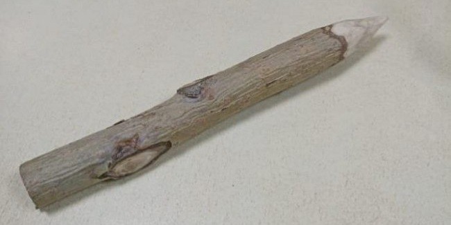 На пропускном пункте в здание Центрального райсуда приставами по охране УПДС были задержаны 50-летняя омичка вместе с 20-летним сыном, которые явились на судебное заседание. При личном досмотре охранники обнаружили в дамской сумке и изъяли заточенный деревянный предмет (на фото), представлявший угрозу безопасности судей, работников и граждан.