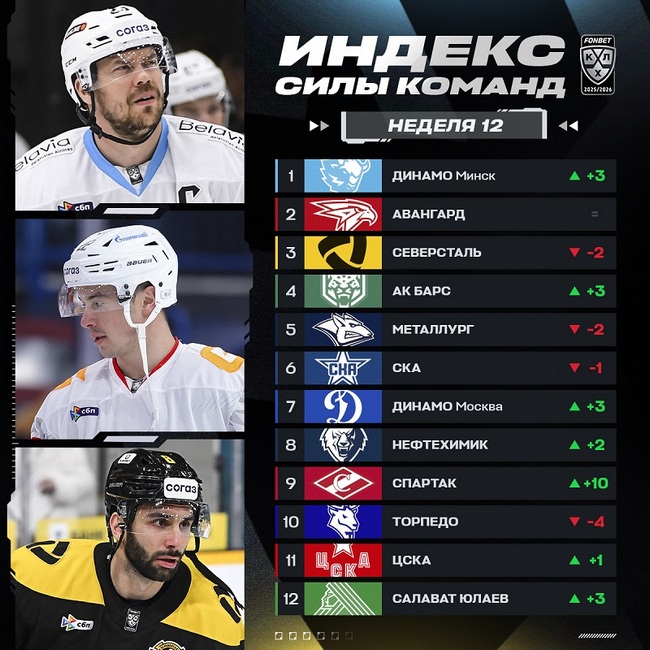 «Индекс силы – это рейтинг, подсчитывающийся математически на основе показателей в текущем сезоне. Регулярный чемпионат все команды начали с одинаковым количеством баллов; за победу в основное время одна команда отнимает у другой 25% её баллов, в случае победы в овертайме или в серии бросков — лишь 12,5%. Таким образом Индекс силы показывает, какие команды находятся «на ходу», обыгрывают фаворитов и выдают длительные победные серии», – напомнили в КХЛ.