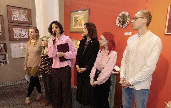 – Концепция выставки очень многогранная, и выросла она из двух наших принципов, – рассказывает куратор Юлия ВОРОНИНА. – Первый – это то, что мы хотим, чтобы мир вокруг стал красивее. А как это сделать? Очень просто: взять и из маленьких художников сделать больших, которые смогут изменить мир к лучшему, и всем станет хорошо в нем жить. Второй принцип – это объединение. Мы объединяем декоративно-прикладное искусство, архитектуру, живопись, графику, чтобы они были одним домом и чтобы они были в доме.