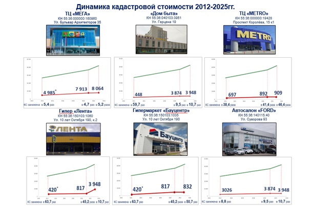 Таким образом, можно утверждать, что кадастровая стоимость объектов коммерческой недвижимости в Омске в 2021 и 2023гг. не была адекватно пересмотрена с учетом изменений, произошедших на рынке, что ставит под сомнение ее достоверность и применимость для целей налогообложения по ст. 378.2 НК РФ.