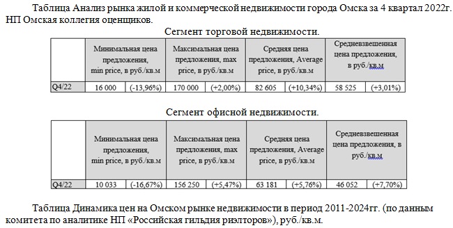 Полученные Сравнительным подходом результаты коррелируют с аналитическими показателями НП «Омская коллегия оценщиков» (Анализ рынка жилой и коммерческой недвижимости города Омска за 4 квартал 2021-23 гг.) и данными комитета по аналитике НП «Российская гильдия риэлторов» о динамике цен на Омском рынке недвижимости в период 2011-2023 гг.