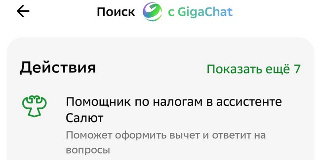 Налоговый помощник на базе ГигаЧата взаимодействует с платформой социальных налоговых вычетов, которую Сбер при поддержке ФНС запустил в этом сентябре. Чтобы подключиться к платформе, достаточно дать согласие в «СберБанк Онлайн» – написать в поиске «Налоговый вычет». Помощник автоматически найдет траты, по которым можно получить вычет (лечение, обучение, спорт).