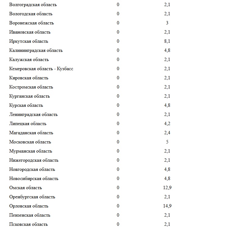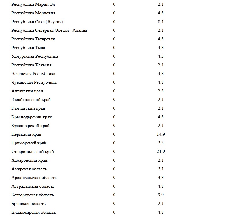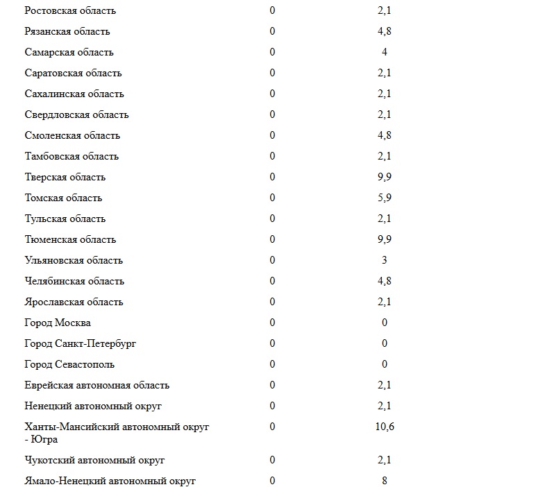 По стране максимальные пределы установлены для Ставропольского края – 43,9%, Республики Коми – 30,3%, для Пермского края и Орловской области – 29,9%, для Тюменской области – 27,1%.