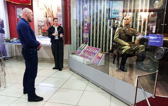 Особый интерес Александр Павлович проявил к постоянно действующей выставке о Гражданской войне в Сибири.