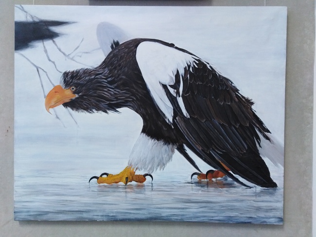 Особенность нынешней выставки, которая заметна сразу – обилие крупноформатных работ и практически высокое качество каждой.