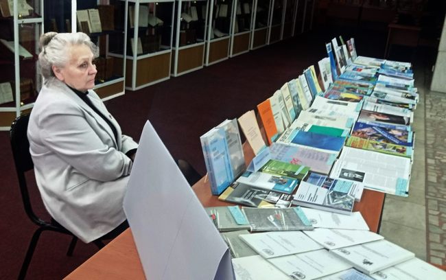 К открытию презентации двухтомного сборника воспоминаний «Моя жизнь в энергетике» главный библиотекарь отдела «Центр краеведческой информации» Галина Петровна ПОНОМАРЁВА подготовила книжную выставку, в которую вошли книги, журналы об истории развития энергетики в стране и Омской области, а также научные работы Виталия ЛЕБЕДЕВА.