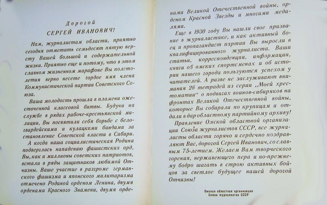 Сергей Иванович оставил фронтовой дневник, собрал и сохранил для потомков ценнейшие материалы о Великой Отечественной войне, которые составляют сегодня важнейшую часть фондов Исторического архива Омской области и активно используются историками и архивистами для изучения военной истории и сохранения памяти о Великой Победе.