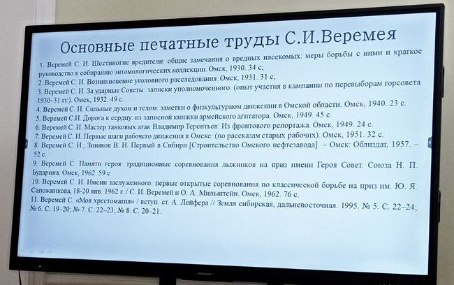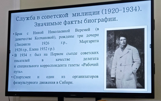 Лектор представил сложный и многогранный жизненный путь Сергея Ивановича Веремея – человека, сумевшего реализовать себя в самых разных сферах. Его служение Родине началось на завершающем этапе Гражданской войны. Профессиональная и общественная деятельность героя охватывала работу в советской милиции и педагогическую сферу, организацию физкультурного движения, участие в борьбе с немецко-фашистскими захватчиками, а также журналистику и краеведение.