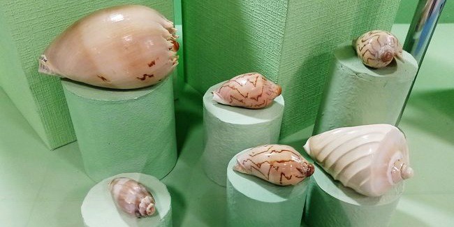 «Значительная часть представленных на выставке раковин моллюсков относится к обитателям тёплых тропических морей, а также к Тихому, Атлантическому, Индийскому океанам. Моллюски обитают в морской среде и пресных водоёмах, но встречаются виды, которые обитают во влажной почве. На выставке можно увидеть раковины хищных моллюсков, использующих яд для поражения добычи. Рыбоядные виды представляют наибольшую опасность. Например, укол ядовитого географического конуса может быть смертельным для человека. Отдельный раздел посвящён раковинам ципрей, или каури, которые на протяжении длительного времени использовались в качестве денежного эквивалента у многих народов. Раковины украшали ритуальные маски и ожерелья народов Африки, применялись для инкрустации оружия и щитов. В настоящее время из таких раковин изготавливают декоративные изделия, брелоки и бусы».