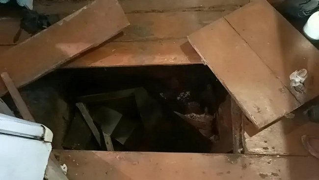 • 9 сентября 2024 года фигурант незаконно проник в дом 72-летней пенсионерки и, применив насилие, забрал у неё 1600 рублей и мобильный телефон с зарядным устройством стоимостью 2600 рублей. С целью сокрытия преступления мужчина связал потерпевшую, ударил ногой по голове и сбросил в подпол, накрыв крышкой (на фото). Дверь в дом он закрыл на замок, а веранду подпер флягой.