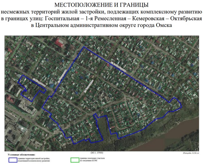 Особенность территории в том, что здесь на террасе правого берега Оми, в створе улицы Кемеровской и Кемеровского переулка, расположен объект археологического наследия – стоянка «Омск – Кемеровский спуск». Инвестору нужно будет самостоятельно подготовить проект по обеспечению сохранности этого объекта при строительстве жилых домов. Кроме того, до начала земляных и строительных работ нужно организовать экспертизу, чтобы выяснить, нет ли на этой территории других археологических памятников. Если признаки таких памятников обнаружатся, то необходимо будет согласовать с Минкультом проведение археологических раскопок.