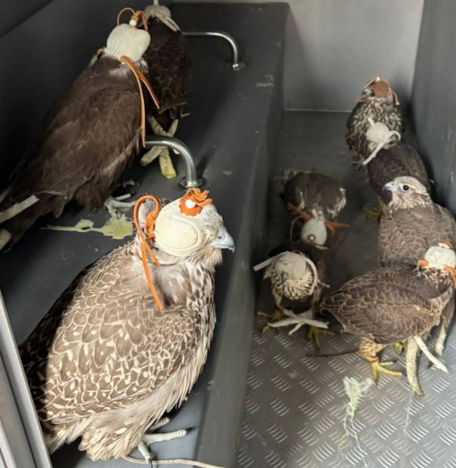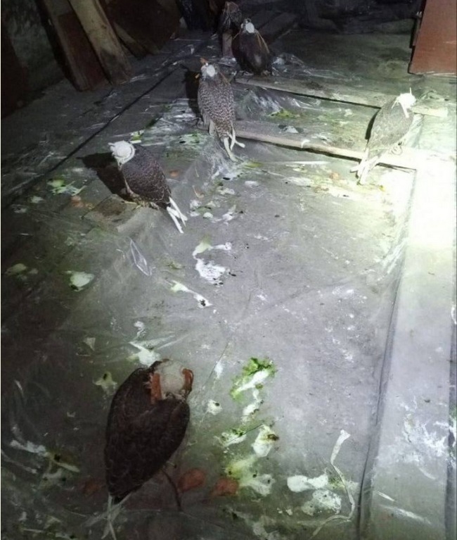 «Сотрудники уголовного розыска ОМВД по Калачинскому району задержали двоих жителей Красноярского края. Установлено, что злоумышленники в багажниках автомобилей перевозили десять краснокнижных особей: восемь сапсанов и двух балобанов. Их полицейские обнаружили в арендованном на двое суток гараже в Калачинске. Птицы содержались в специальных колпачках, в холодном помещении, куда не проникает дневной свет. Фигурантам избрана мера пресечения в виде заключения под стражу. Машины помещены на специализированную стоянку. Птицы переданы специалистам Большереченского зоопарка, где им обеспечены необходимый уход и содержание».