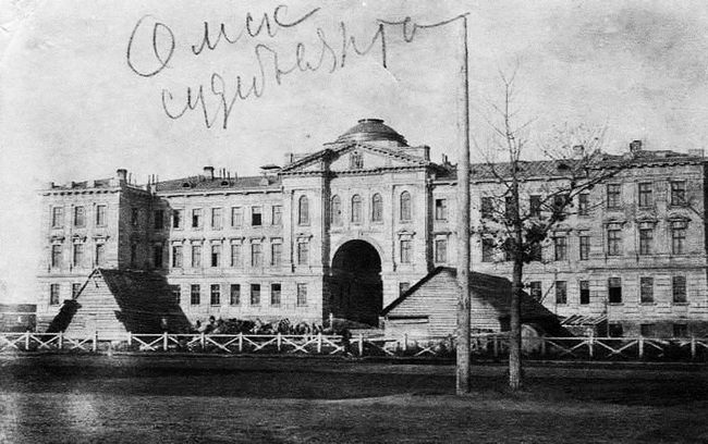 Здание судебных установлений – ныне Законодательное собрание Омской области. Построено оно в конце 1916 года. До середины лета 1919 года часть здания со стороны современного стадиона «Динамо» была в строительных лесах. При А.В. Колчаке здесь находились различные учреждения, включая и Министерство юстиции. Спикер рассказал один интересный случай: