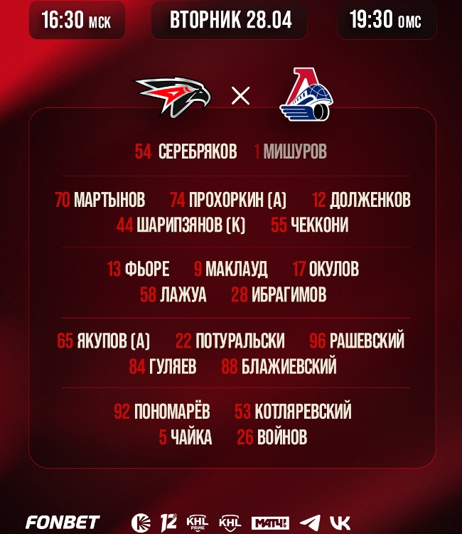 На «G-Drive Арене» 28 апреля в третьем матче серии 1/2 финала Кубка Гагарина хоккеисты «Авангарда» уступили ярославскому «Локомотиву» со счётом 2:4 (2:0, 0:3, 0:1).