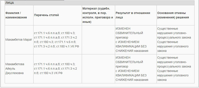 Восьмой кассационный суд общей юрисдикции по жалобе №7У-8995/2025 стороны защиты проверил законность приговора Октябрьского райсуда в отношении 63-летней Айкуль МАХАМБЕТОВОЙ и её 43-летнего сына Марата МАХАМБЕТОВА.